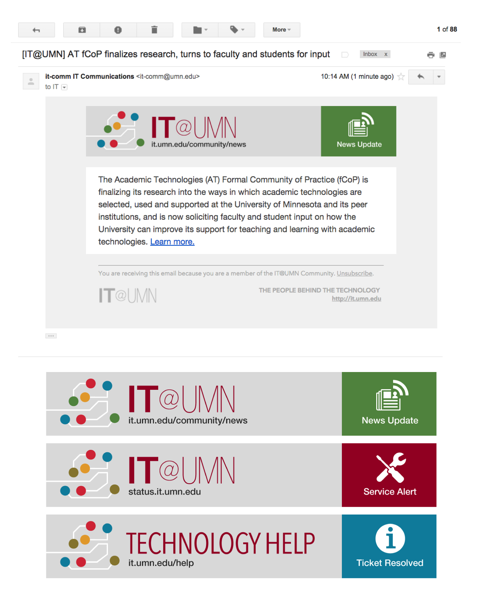 Each graphic accompanied a service offered by Information Technology on the IT@UMN website.